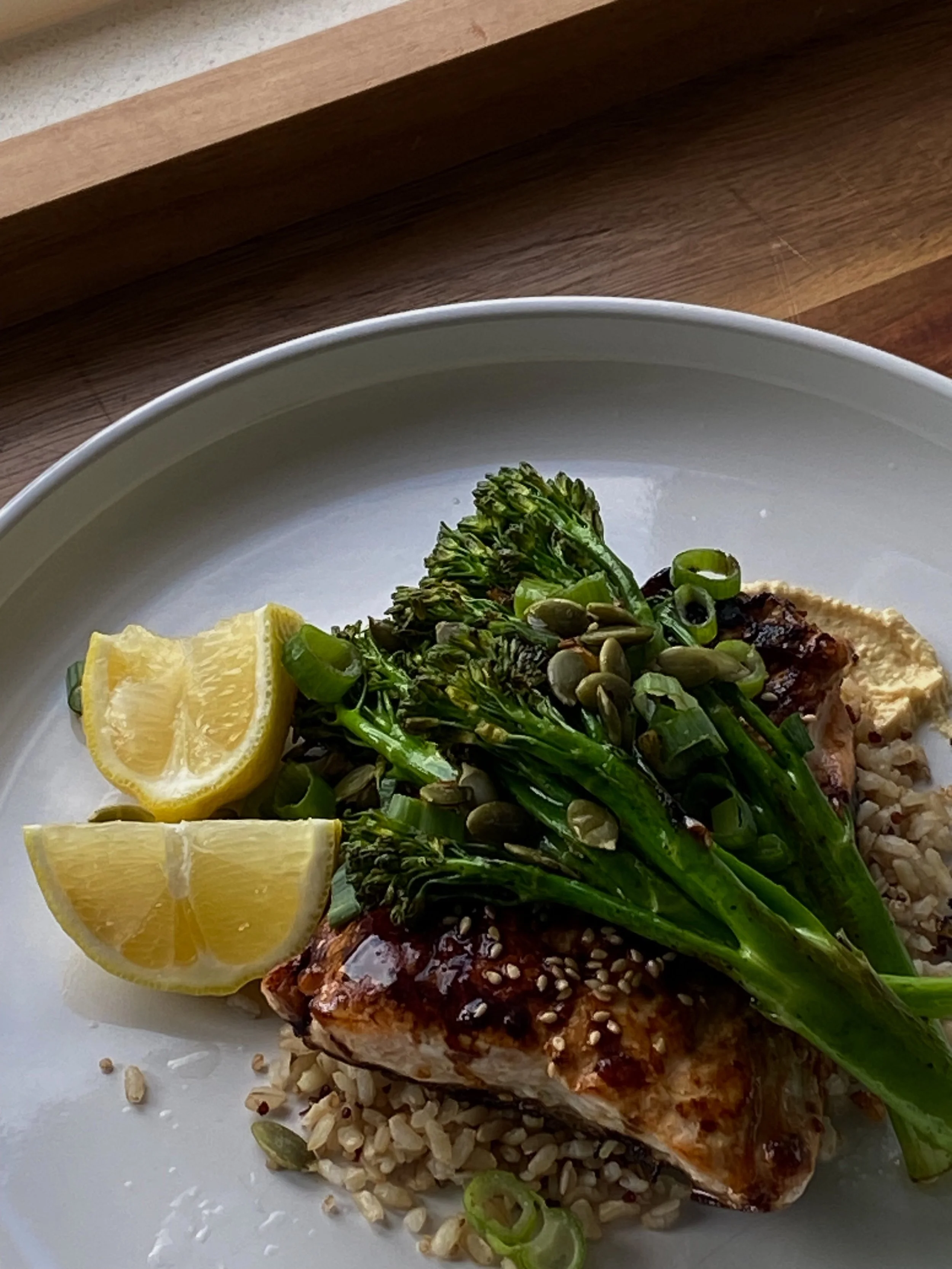 Teriyaki Salmon and Garlic Broccolini with Quinoa